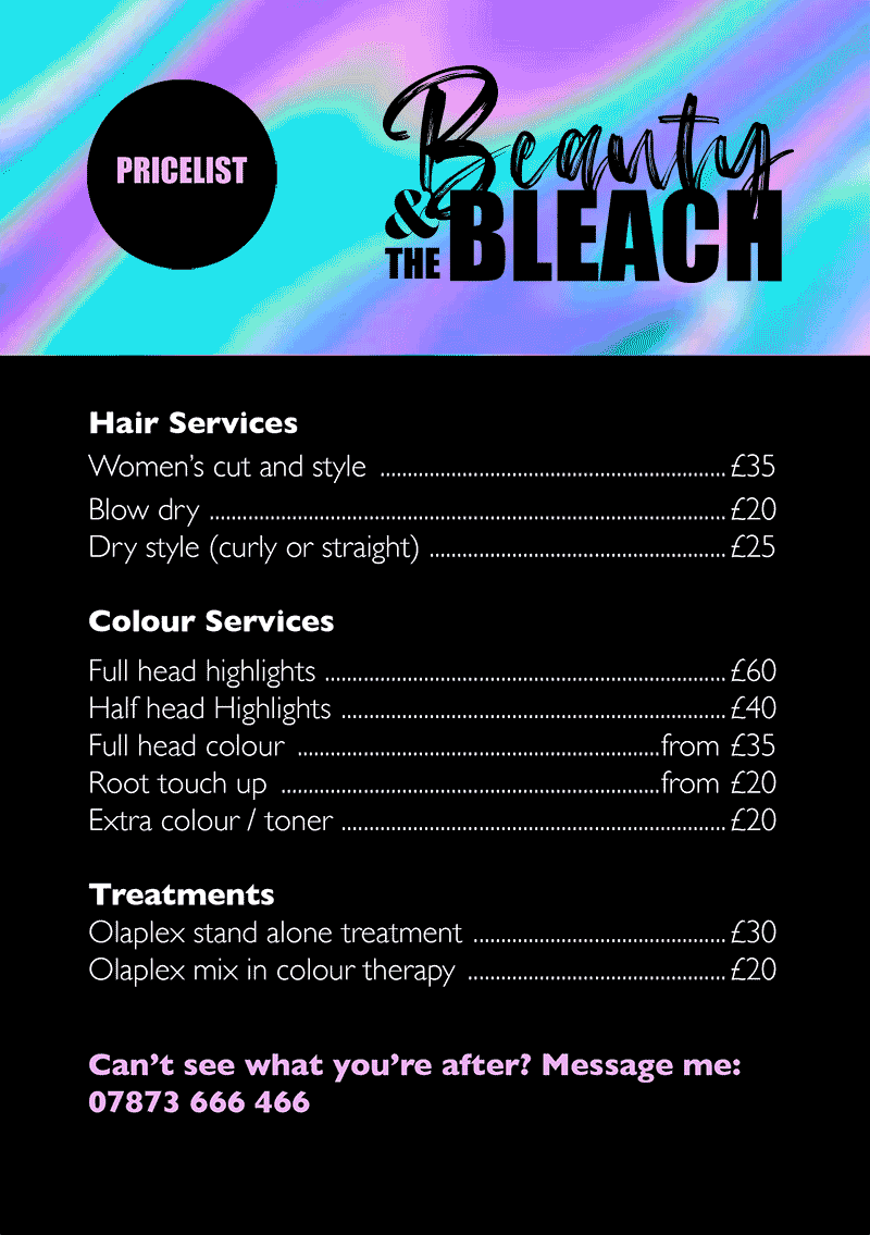 Personal logo design for a hairdresser, she wanted something that would be a bit different to the usual beauty industry of pale colours and twirly typography. The business cards were on an ebony black colour plan with a holographic foil.